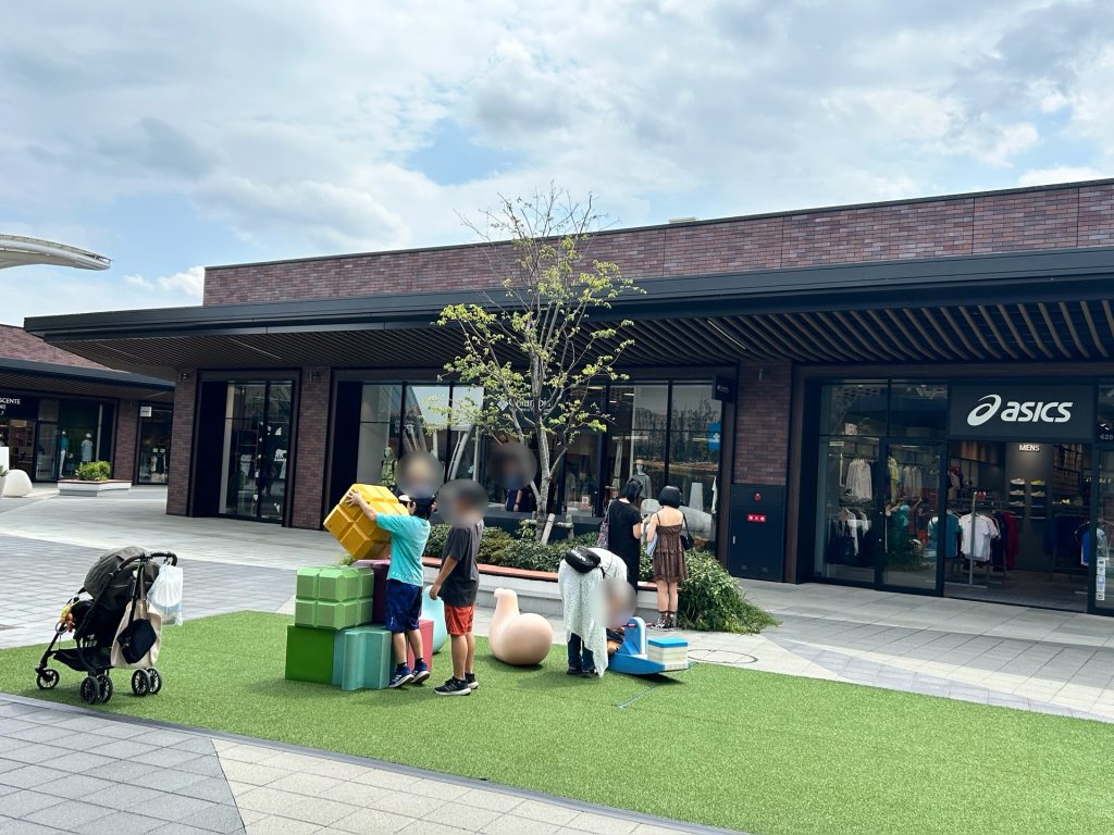 とても暑い日でしたが、家族連れで子供たちが大きなブロックで遊んでいたり、水遊びができるエリアがあり。