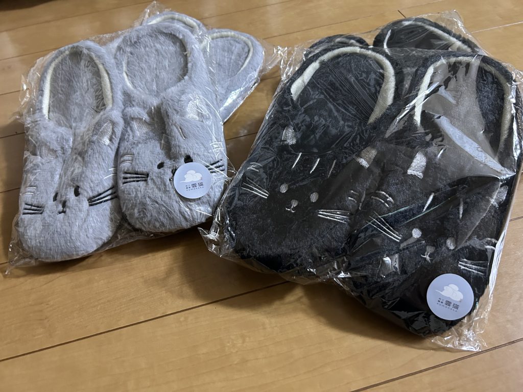 「これ、新しい商品サンプルなんです!」と、かわいいスリッパをいただいてしまいました!!