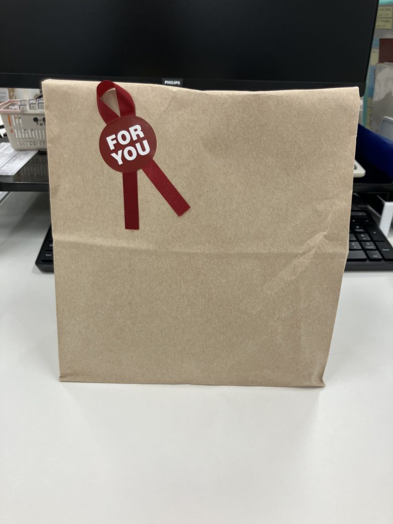 お昼休みからデスクに戻ると、無印良品の包装らしきプレゼントがひとつ
